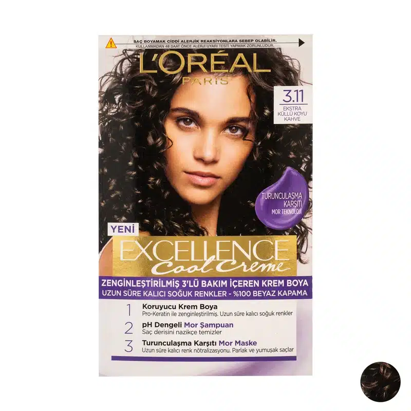 شما به دنبال ویژگیهای رنگ موی لورال شماره 3.11 (که با نامهایی مانند خاکستری تیره، قهوهای سرد خیلی خاکستری یا Ultra Ash Dark Brown شناخته میشود) هستید. بر اساس اطلاعات موجود، این محصول از سری Excellence Cool Creme است و برای دستیابی به یک رنگ قهوهای سرد و تیره با پوشش عالی سفیدی مو طراحی شده است.